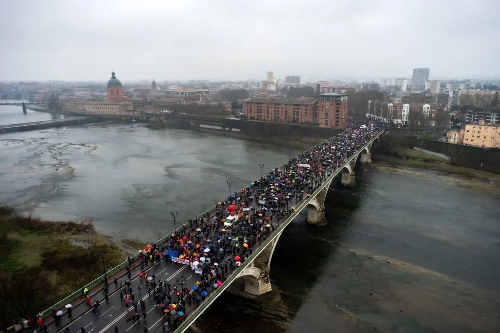 Manifestación durante el paro nacional contra la reforma previsional, en Toulouse, Francia, 7 de marzo. (Matthieu Rondel / Bloomberg via Getty Images)
