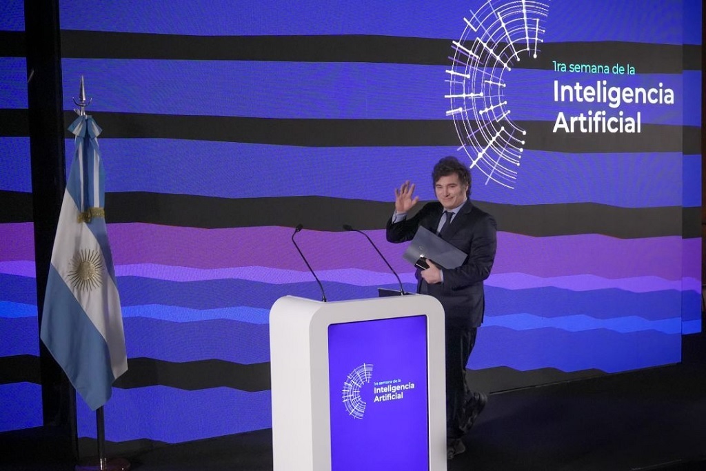 El presidente argentino Javier Milei participando de la «Primera Semana de la Inteligencia Artificial», el 2 de diciembre de 2024. (Imágen: Presidencia de la Nación)