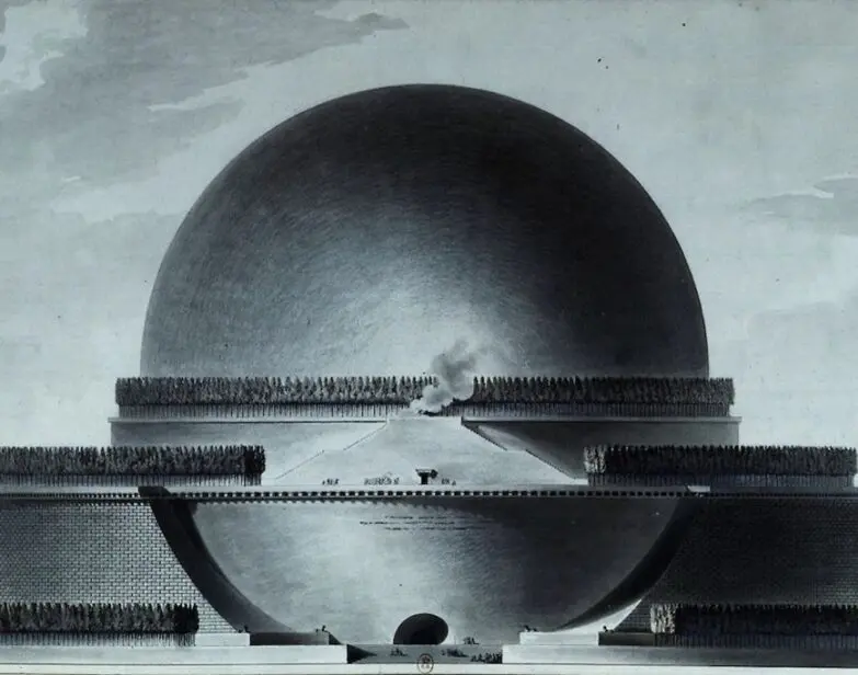 En los años posteriores a la Revolución Francesa, el arquitecto Étienne-Louis Boullée diseñó edificios tremendamente ambiciosos que nunca llegaron a realizarse. Sus ideas influyeron tanto en la derecha como en la izquierda y plantearon la cuestión de si es posible una arquitectura revolucionaria.